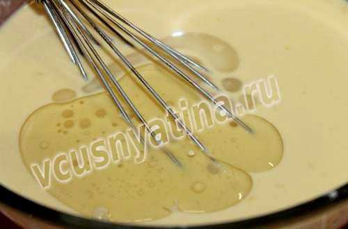 молоко во взбитую смесь из яиц сахара и соли. Молоко берите комнатной