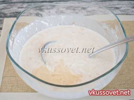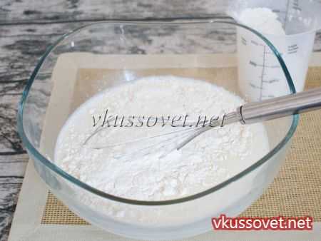- Ввожу небольшими порциями мучную смесь и замешиваю густое однородной консистенции тесто.