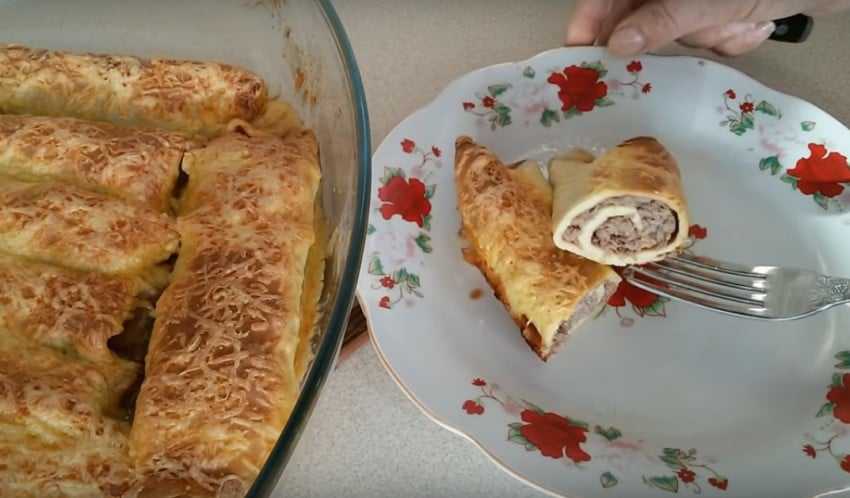 Рецепт с фото яичных блинов с мясной начинкой