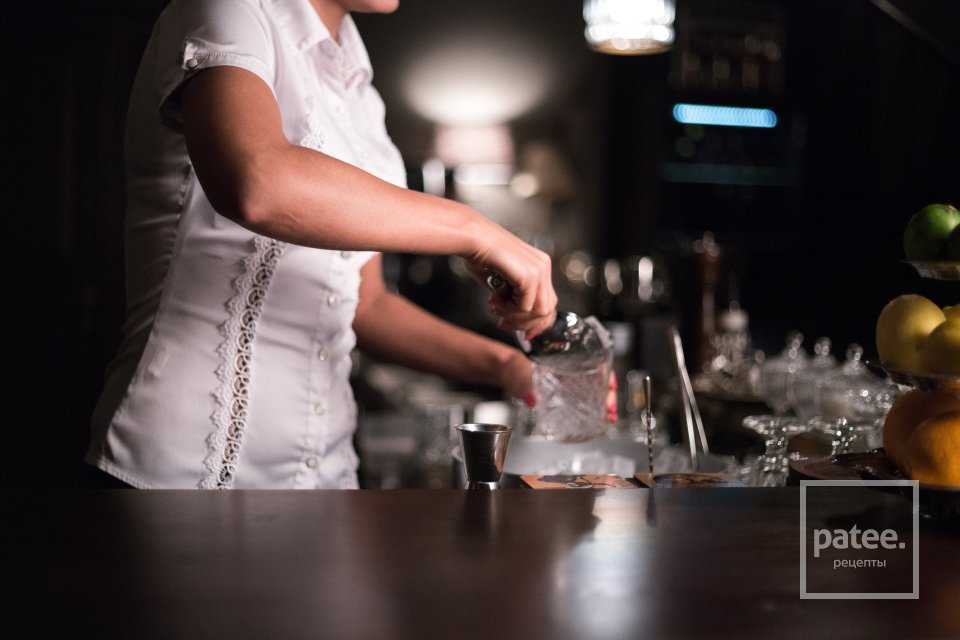 Хорошо перемешиваем все ингредиенты с помощью барной ложки.