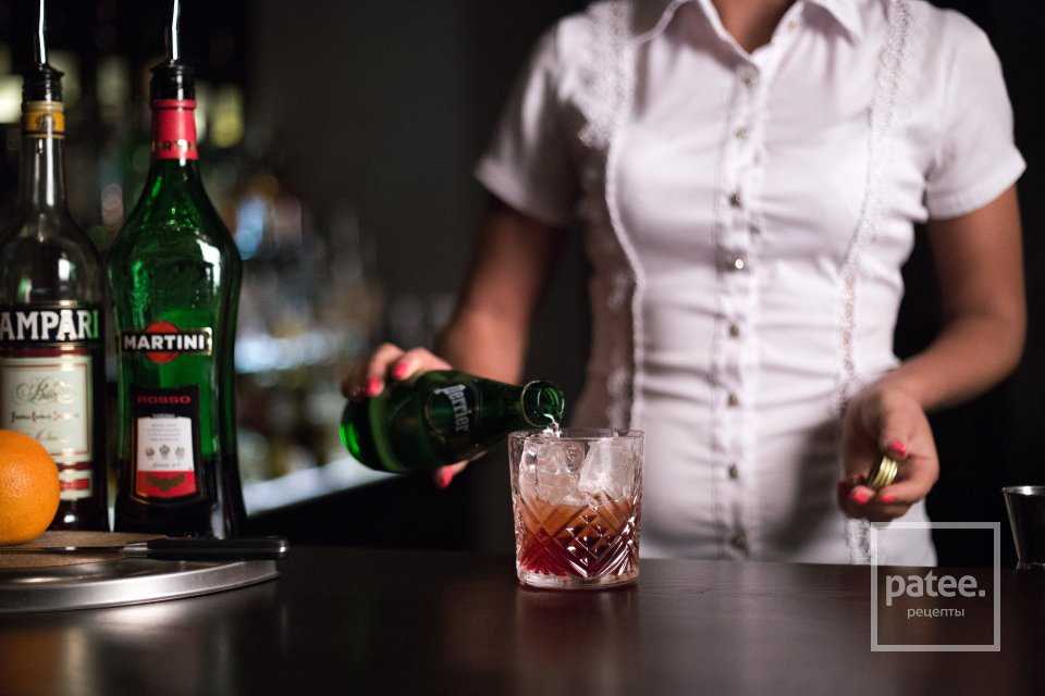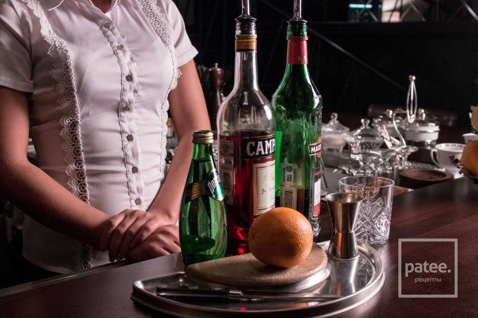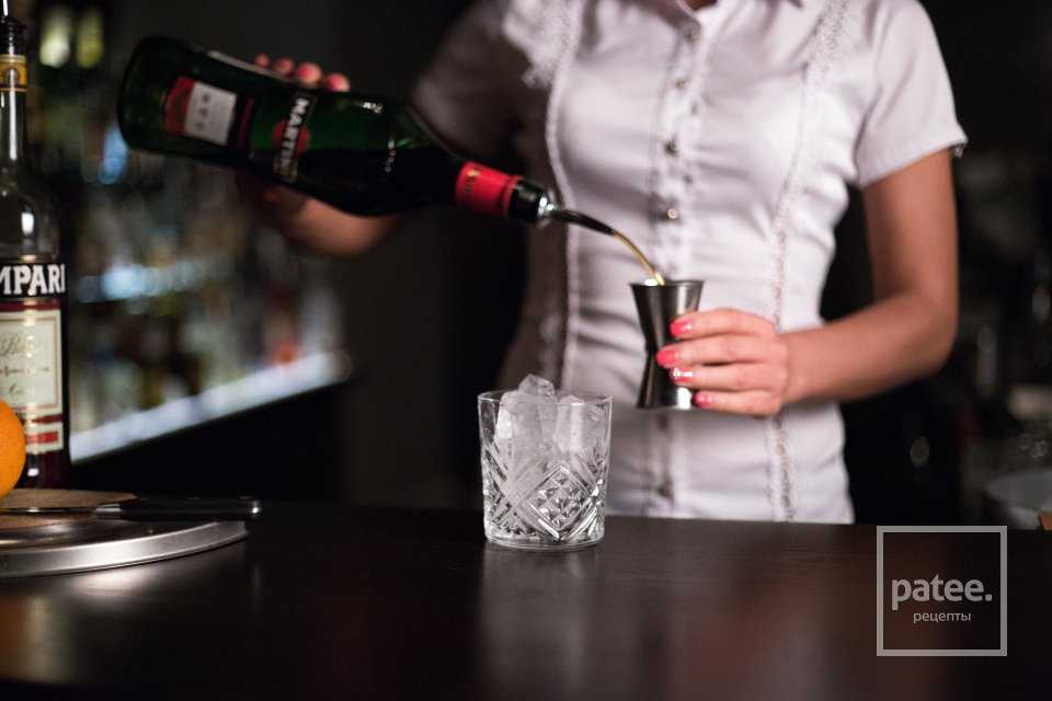 Кампари биттер берем в том же количестве, что и красный вермут.