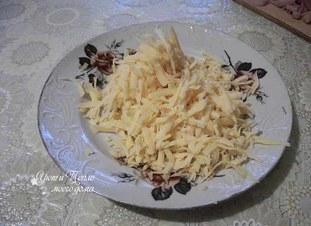 Пока блины готовятся, успеваю между делом натереть на крупной терке сыр.