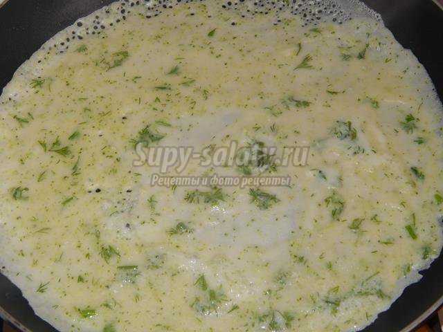 Добавляем массу из брокколи и рубленый укроп в блинное