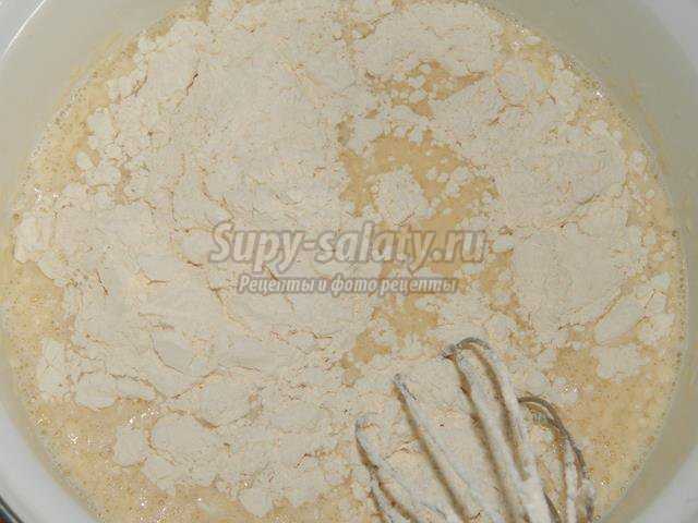 Продолжая потихоньку размешивать венчиком, добавим постепенно муку. Ее