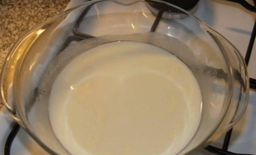 - Половину стакана молока подогреваем в микроволновке и размешиваем в нем дрожжи. Засыпаем в смесь 3 ст. ложки муки и сахарного песка. Накрываем массу полотенцем или крышечкой и ставим в теплое место. Даем дрожжам подойти 20 мин.