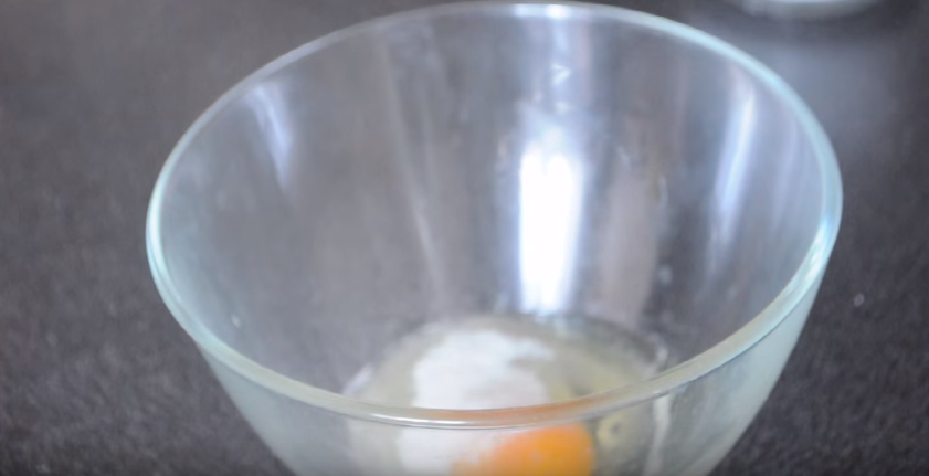 1. В глубокой миске соединяем яйцо с солью и сахаром. Взбиваем.