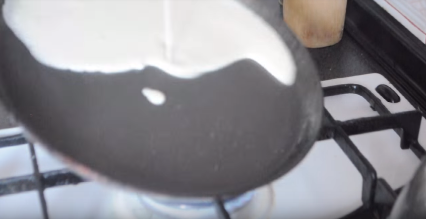 - Небольшую сковороду ставим на плиту, включаем маленький газ и ожидаем, пока она достаточно нагреется.