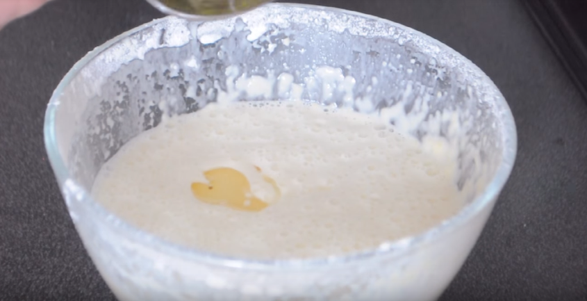 - Завершающим этапом приготовления теста является добавление растительного масла для того, чтобы блины были жирными и не прилипали к сосуду.