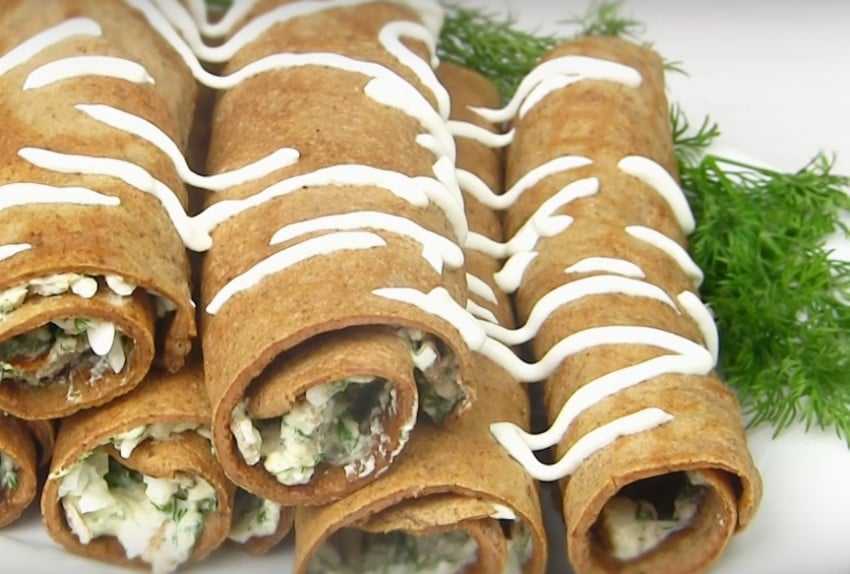 Из таких блинов мне нравится заворачивать рулетики и фаршировать их. Подаю как самостоятельное блюдо. Но моему мужу особенно полюбился торт из них. Я делаю начинку из тушеной моркови с луком, промазывая каждый слой сметаной со специями. Получается очень аппетитно. Если вам не терпится узнать, как пожарить вкуснейшую закуску – представляю мою подборку рецептов.
