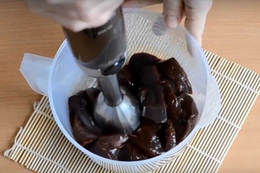 1. Печень тщательно промойте. Измельчите в однородную массу с помощью блендера или мясорубки.