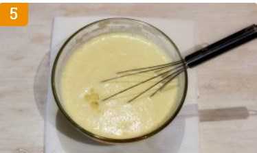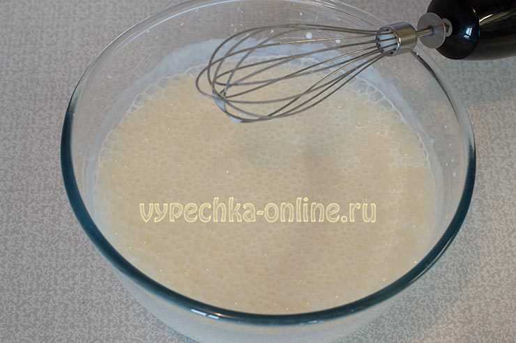 Всыпать сахар и смешать все венчиком до однородности. Сахар должен полностью раствориться в смеси.