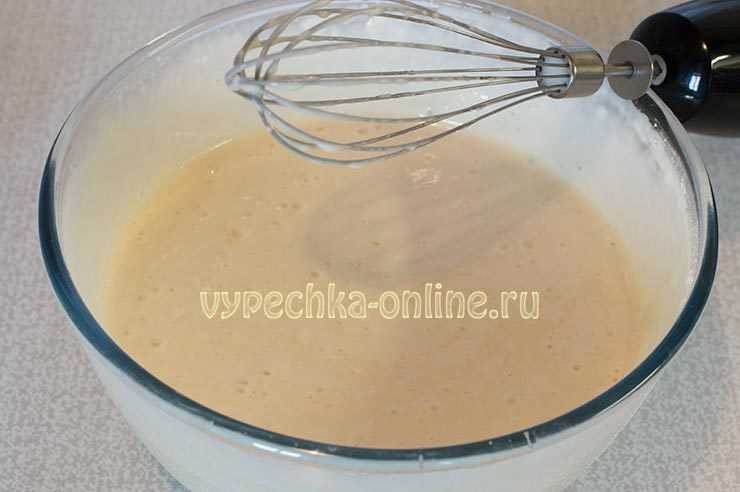 - Приготовьте тесто, смешав все ингредиенты. Взбейте миксером.