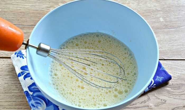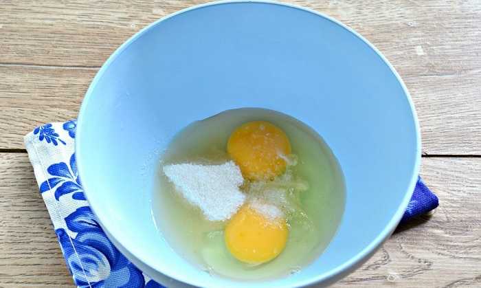 1. В глубокую тарелку вбейте яйца, добавьте сахар и соль.