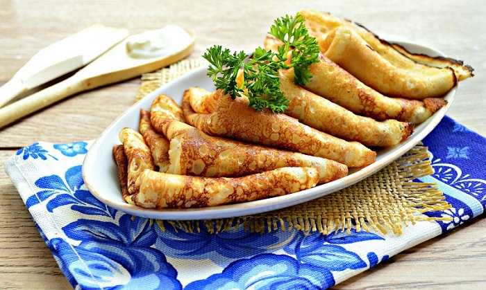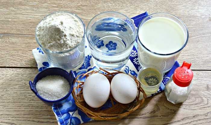 Этот вариант наиболее распространенный. При замешивании теста можно добавлять соду, как указано ниже, или заменить разрыхлителем. Блинчики получаются очень вкусными, нежными и почти прозрачными.