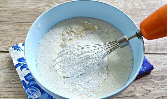 3. Начинайте замешивать тесто так, чтобы не оставалось мучных комочков. Это можно сделать при помощи венчика или миксера.