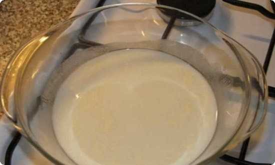 Кислое молоко следует вынуть из холодильника заранее, чтобы его температура приблизилась к комнатной. Если вы забыли это сделать, то просто слегка нагрейте продукт на плите или в микроволновой печи. Добавьте прокисшее молоко в миску с яичной массой.
