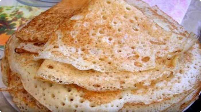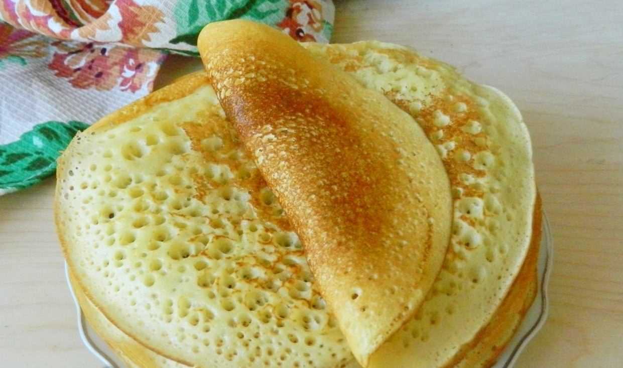 Рецепт тонких с дырочками блинов на кислом молоке без яиц