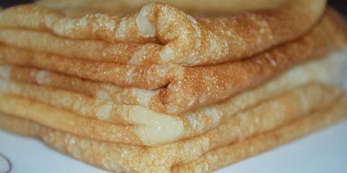 Когда гости на пороге, а в холодильнике не хватает каких-то ингредиентов – что делать? Если вдруг обнаружилось, что нет в наличии яиц или же вы не едите их из личных соображений, то блины на скисшем молоке – ваш рецепт. Готовые изделия выглядеть будут как тоненькие классические блинчики с хрустящими краями. На вкусе блинов отсутствие яиц негативно не скажется.