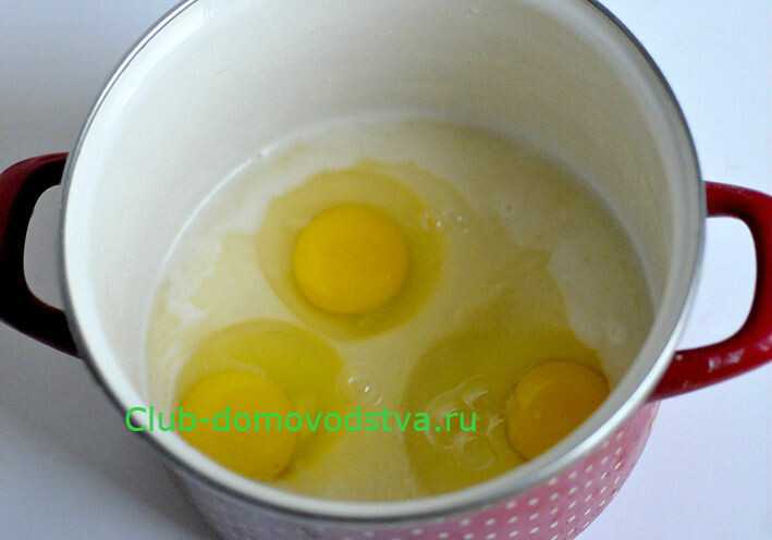 1. В миску или кастрюлю разбиваем яйца, размешиваем их венчиком. В Бабушкином рецепте не стоит использовать миксер, тесто должно быть рукотворным :)).