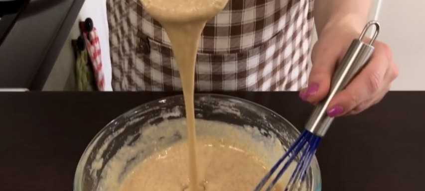 2. После этого возьмите просеянную через сито муку и поместите ее к этим составляющим. Размешайте, у вас должно получиться тесто, как на оладьи. Дайте ему постоять при комнатной температуре расстояться 30 минут при закрытой крышке.