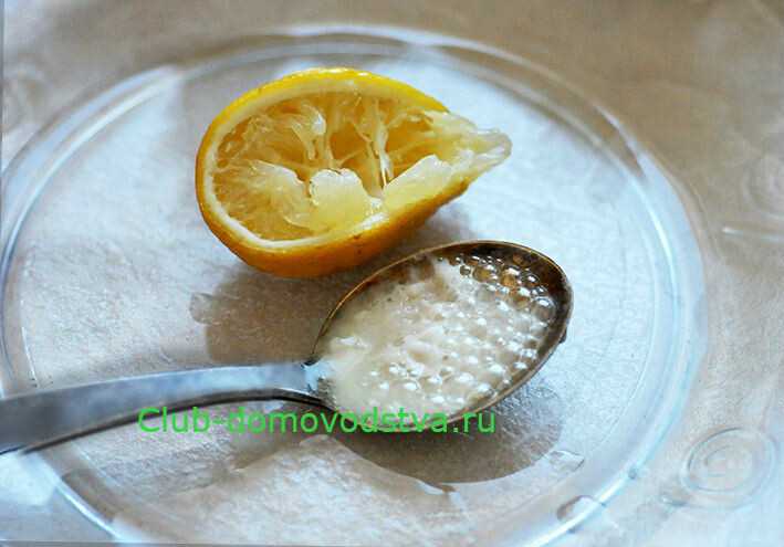 - Половинку чайной ложки соды, погашенной лимонным соком или лимонной кислотой;