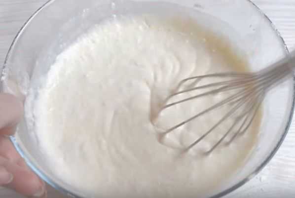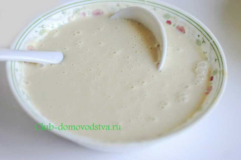 Замесите тесто, которое по своей консистенции будет напоминать кефир (даже немного жиже).