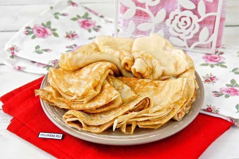 Тонкие блины — рецепт с фото на кислом молоке смотрите здесь.