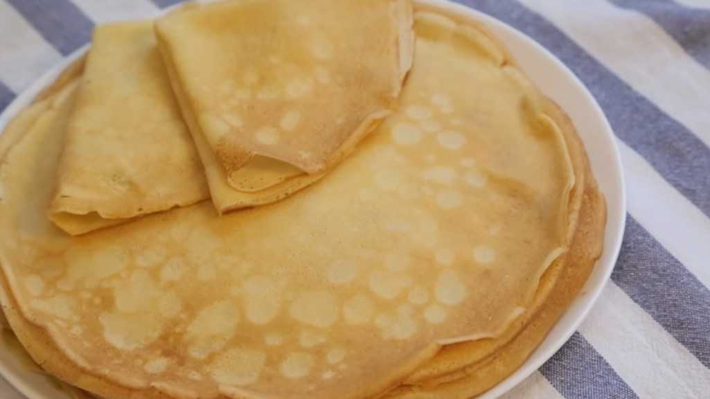Видео о том, как приготовить сладкие блины на молоке с дырочками без яиц быстро
