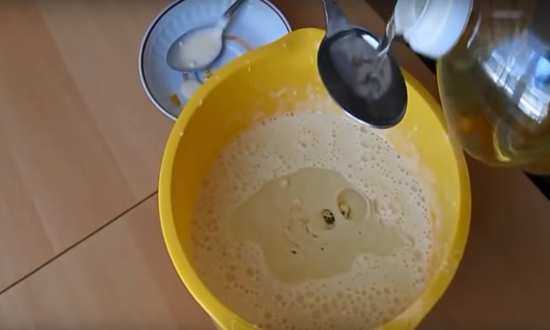 - В конце влить указанное количество масла и перемешать. Урегулировать по вкусу и приступать к выпечке.