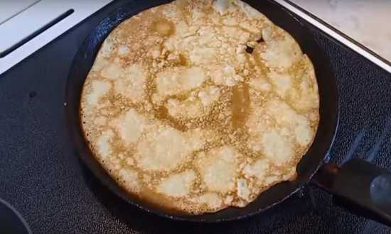 - Ее нужно вернуть на огонь, еще раз прогреть, а затем выпекать блины обычным способом. Масло в процессе готовки добавлять больше не нужно будет.