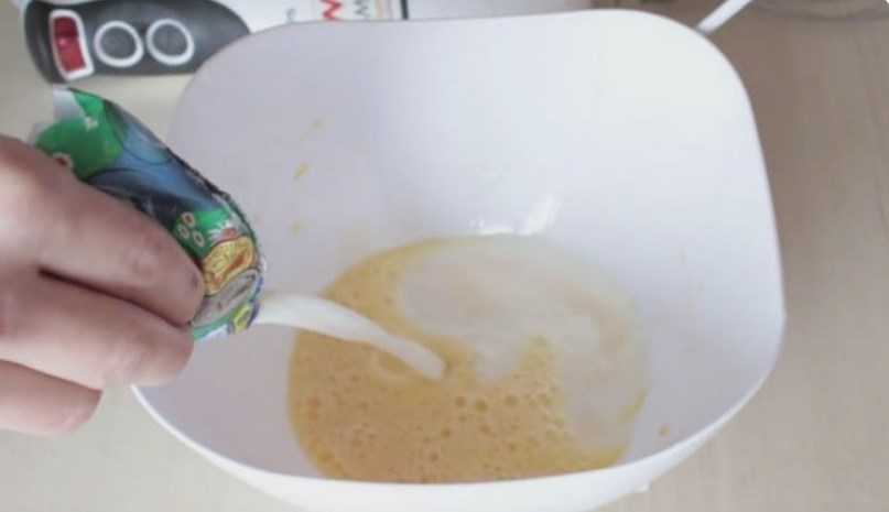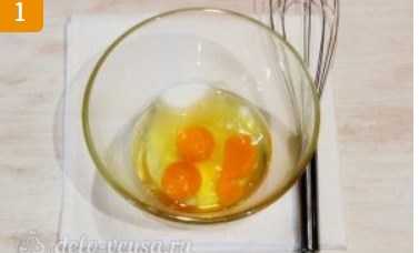 1. Яйца разбиваем в миску и взбиваем до появления пены (пару минут).
