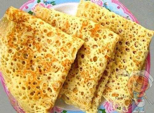 Этот рецепт предполагает блинчики с дырочками. Следует очень внимательно прочитать данный рецепт, т.к. в нем и присутствует главный ингредиент, который делает блины очень тонкими и с дырочками.