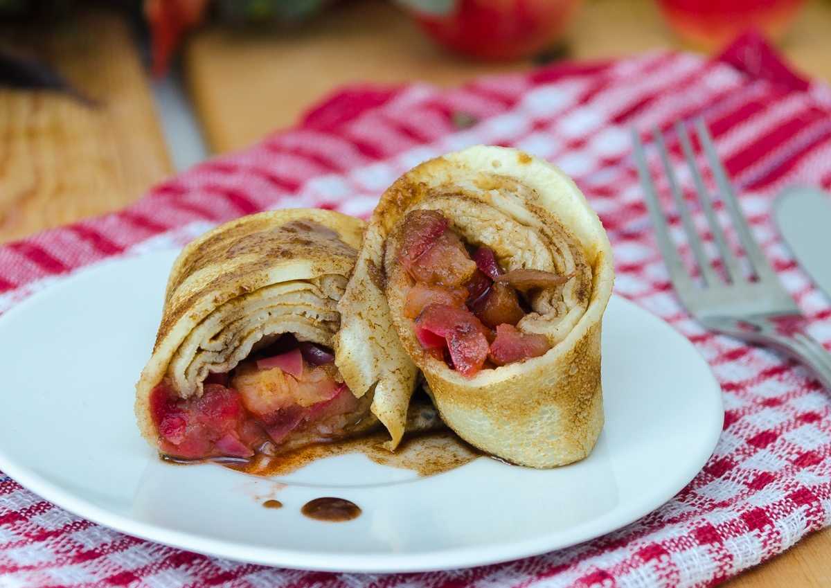 Фаршированные блины с яблоками: пошаговый видеорецепт