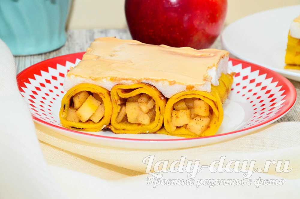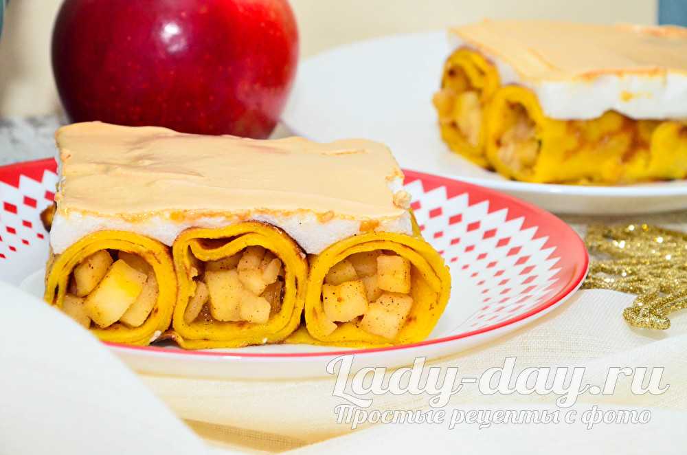 Рецепт приготовления блинов с яблоками и корицей под меренгой