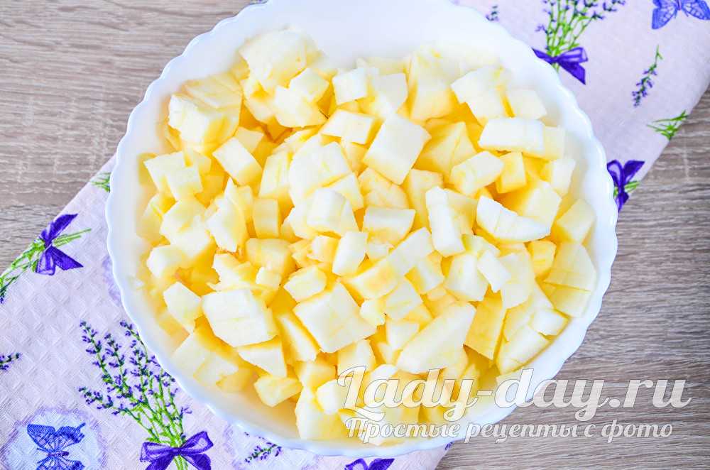 - Тщательно очистить яблоки от шкурки и нарезать небольшими ломтиками.