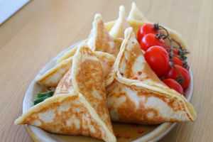 Блин с начинкой сгибаем пополам, а потом еще раз — четвертью, получается треугольник.