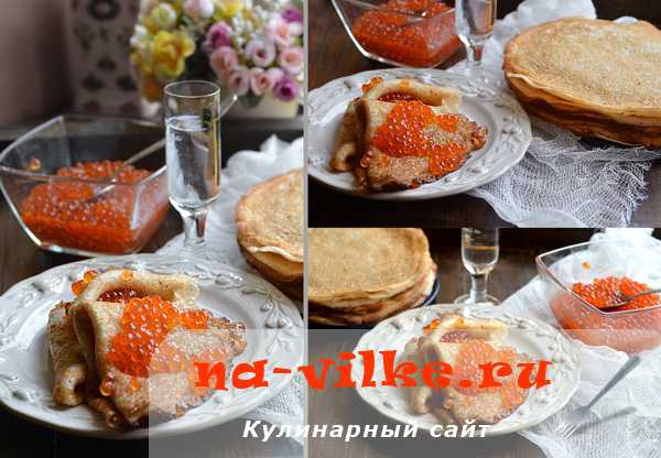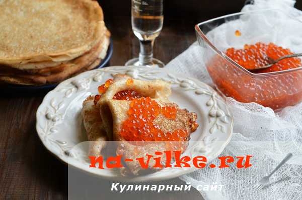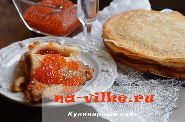Овсяно-пшеничные блины с красной икрой – рецепт
