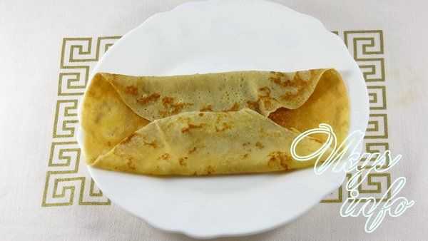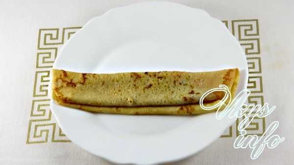 Этот способ, как завернуть блинчики с икрой, особенно оригинален. Он не требует особых навыков – все очень просто. Итак, края каждого (смазанного растопленным сливочным маслом) блинчика заворачиваем так, чтоб их края соединились по центру, а потом складываем пополам — широкая полоска превращается в двойную узкую.