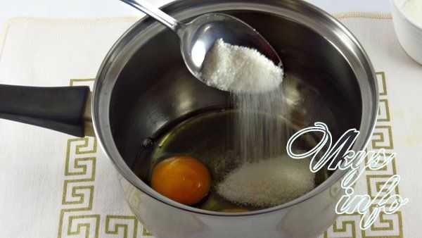 - Положите сахар в емкость с ингредиентами. Блины должны получиться слегка сладковатыми, чтобы лучше подчеркнуть вкусовую гамму солоноватой икры.