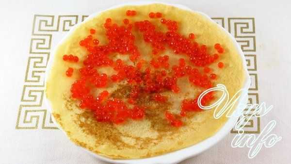 Рецептура экономной начинки для блинов с икрой. Испечь их можно по любому из рецептов выше. Всего понадобится около 5 штучек.