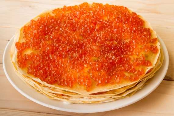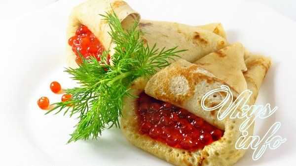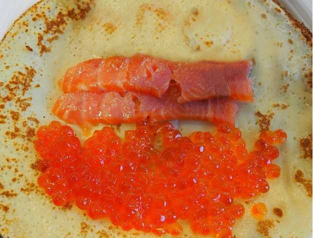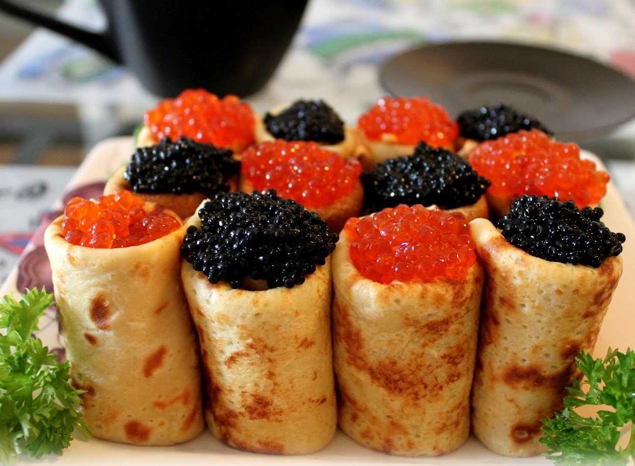 Если хотите ощутить действительно божественный вкус, то приготовьте блины с красной и черной икрой. Да, это удовольствие не из дешевых, но зато запомнится надолго.