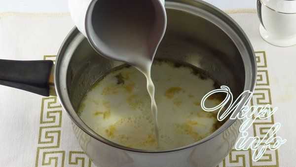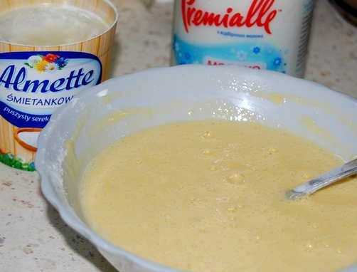 Молоко предварительно подогрейте до комнатной температуры, соедините его с яйцами и тщательно перемешайте.