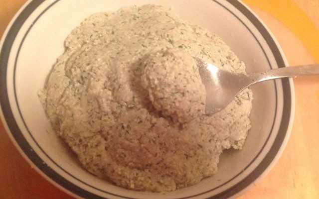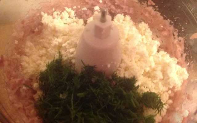 3. Высыпаем к рыбной массе свежий творог и заранее измельченную зелень укропа. Еще раз включаем блендер, чтобы он превратил наши ингредиенты в однородную мягкую намазку.