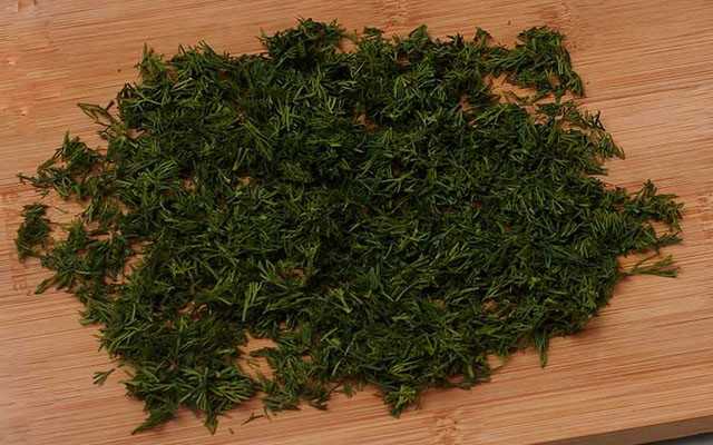 4. Промытый укропчик тоже следует измельчить. Чем мельче он будет, тем больше свежести он придаст начинке.