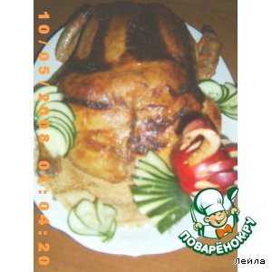 Как видно на картинке отделяем кожу от мяса, оставляем внутри только крылышки и голени.