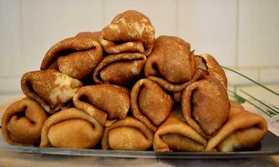 - Укладывать на блюдо следует швом вниз, чтобы блин не разворачивался.