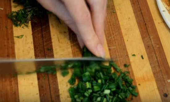 Для придания пикантности фаршированным блинчикам с сыром и курицей в фарш можно добавить измельченной зелени или продавить через чеснокодавилку 2 зубчика чеснока.