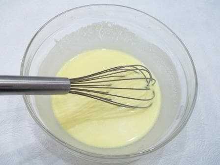 К желткам добавляем молоко (комнатной температуры), сахар и ванилин, взбиваем.
