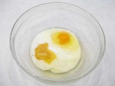 В миску налейте кефир и растительное масло, вбейте яйцо, положите мед и щепотку соли.
