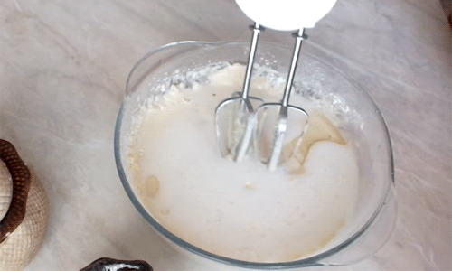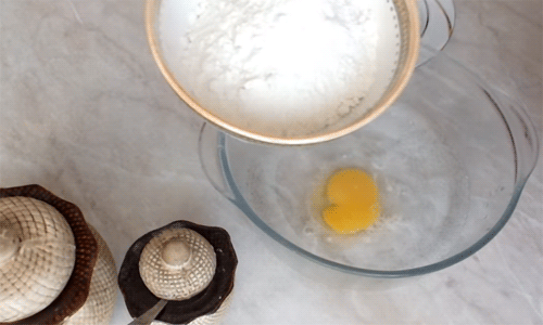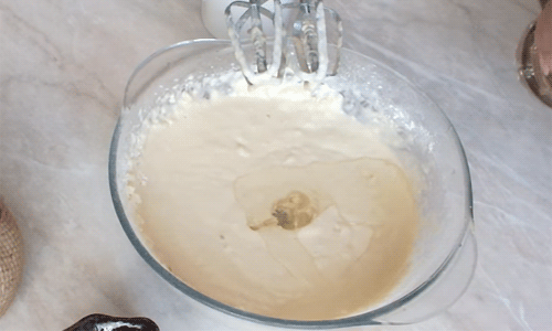 - Яйца взбивают до кремовой консистенции с сахаром.